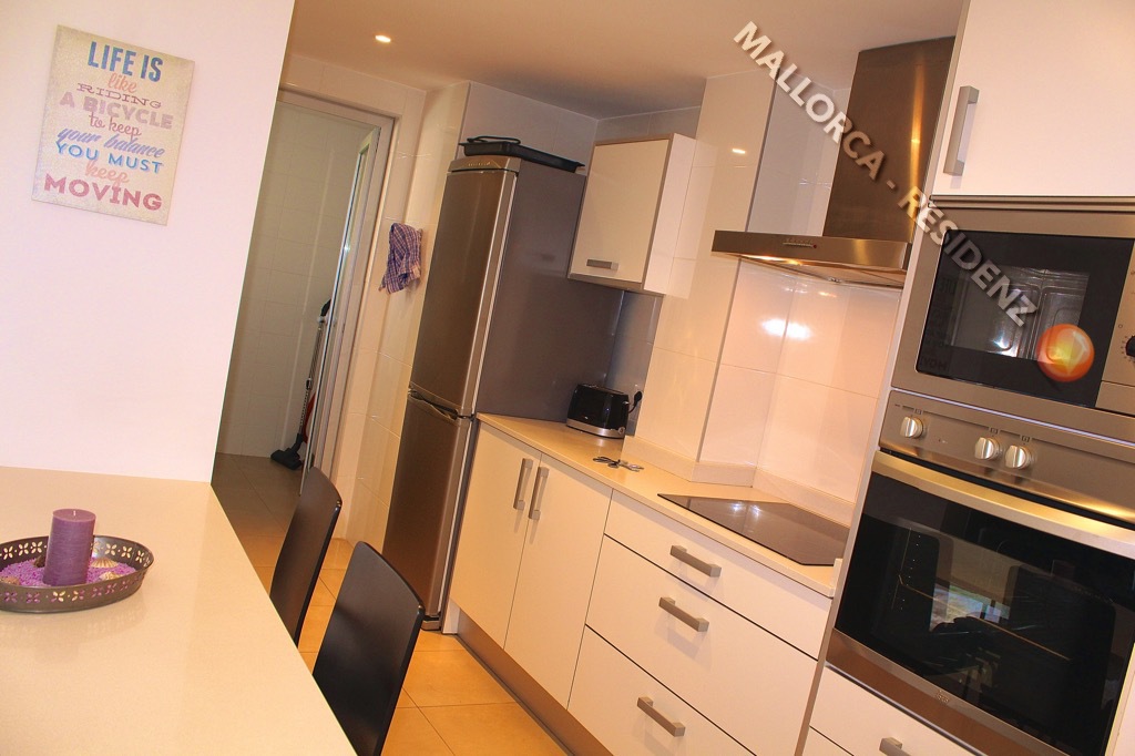 neuwertig und modern möbliert, die Küche ist hochwertig und komplett ausgestattet. 2 Schlafzimmer, 2 Bäder eines davon en Suite. Zur weiteren Ausstattung gehören Einbauschränke, moderne Bäder