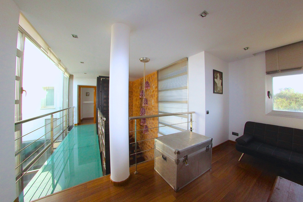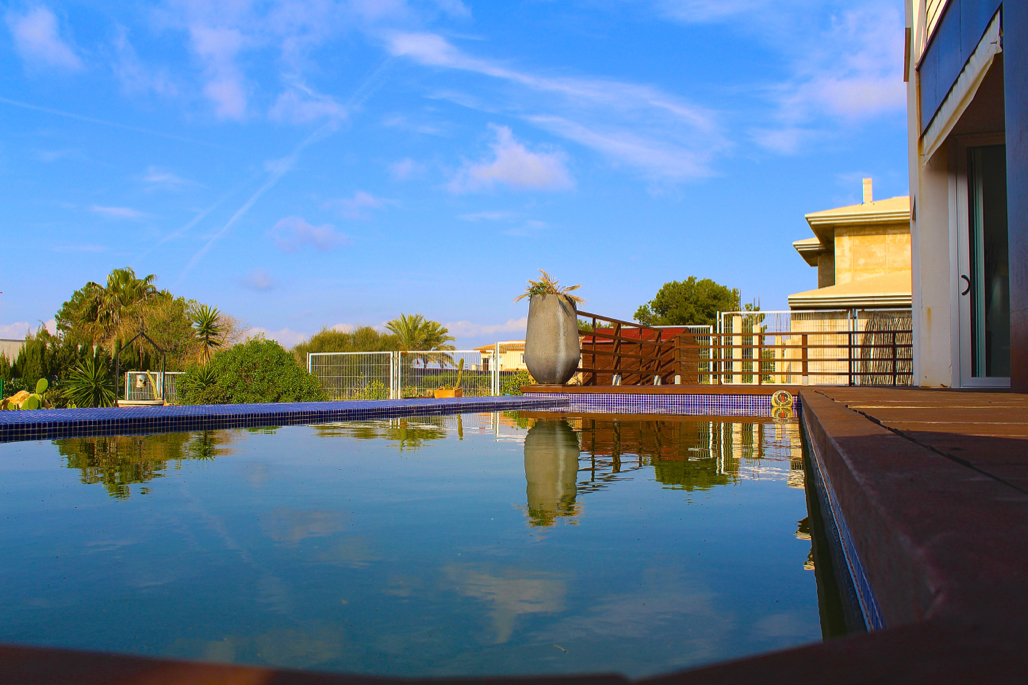 Diese exklusive Villa mit Pool, Grillbereich und komfortabler Ausstattung bietet Ihnen eine barrierefreie Unterkunft unweit des Flughafens von Palma. Der beeindruckende Wohnbereich besticht durch ein großes Wohnzimmer mit Kamin, eine separate Küche und viel Komfort. Die Schlafzimmer sind komfortabel ausgestattet und haben teilweise ein Badezimmer en suite. Die wunderschöne Dekoration schafft ein besonderes Ambiente. Das Obergeschoss ist durch eine Außentreppe auch separat zugänglich. Das 1054 m² große Grundstück bietet überdachte Terrassenbereiche, einen schön angelegten Garten mit Teich und einen Swimmingpool. Draußen können Sie wunderbar mit Ihren Lieben ein BBQ veranstalten. Besondere Merkmale: Ein Aufzug von der Tiefgarage bis zum Obergeschoss bietet absoluten Komfort und Barrierefreiheit.
