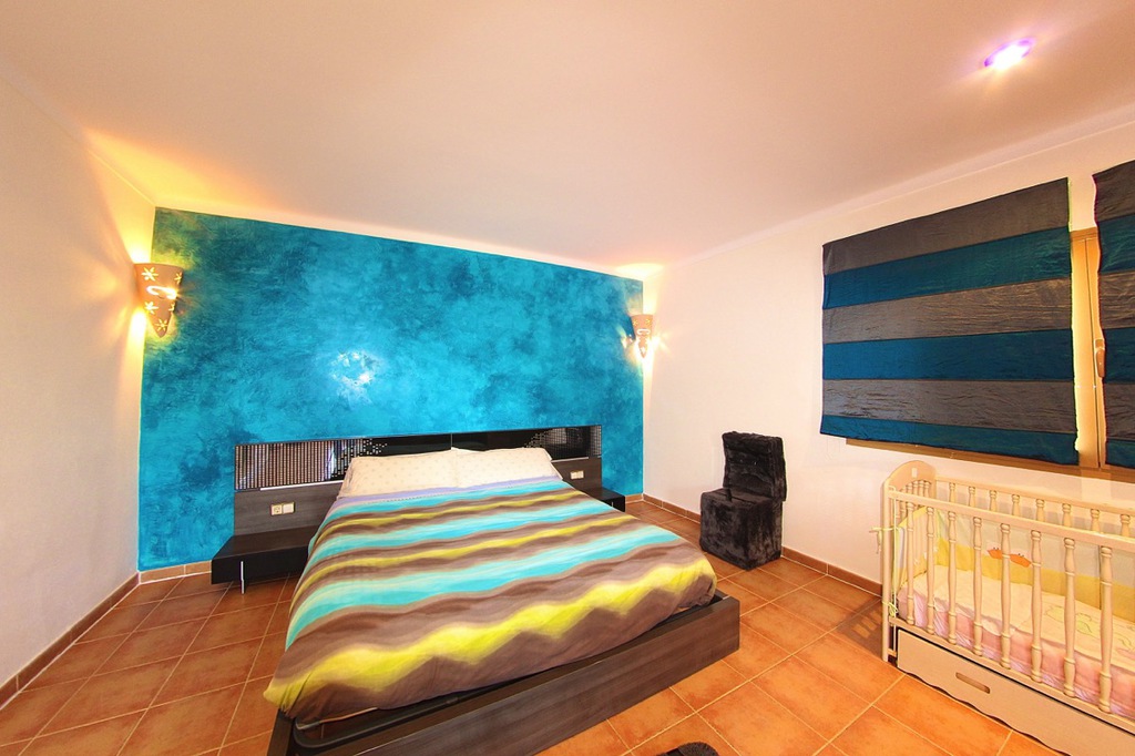 befinden sich 3 weitere Doppelzimmer sowie ein Wohnzimmer mit Zugang zu einer Terrasse, die einen atemberaubenden Blick auf die Berge freigibt. Die 2. Etage ist ideal für Kinder geeignet. Sie bietet