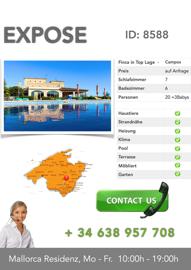 weltbekannten "Es Trenc Strand" sind es mit dem Auto nur 10 Minuten. Hier erwartet Sie ein feinsandiger Naturstrand und kristallklares Wasser - perfekt für einen Sommertag mit Karibikfeeling am