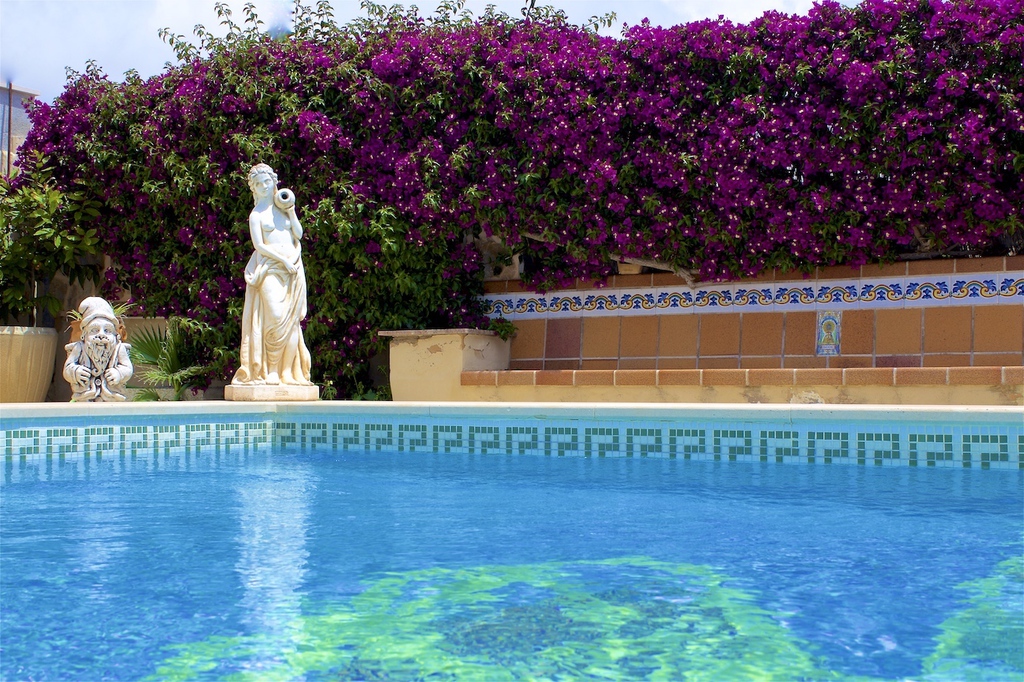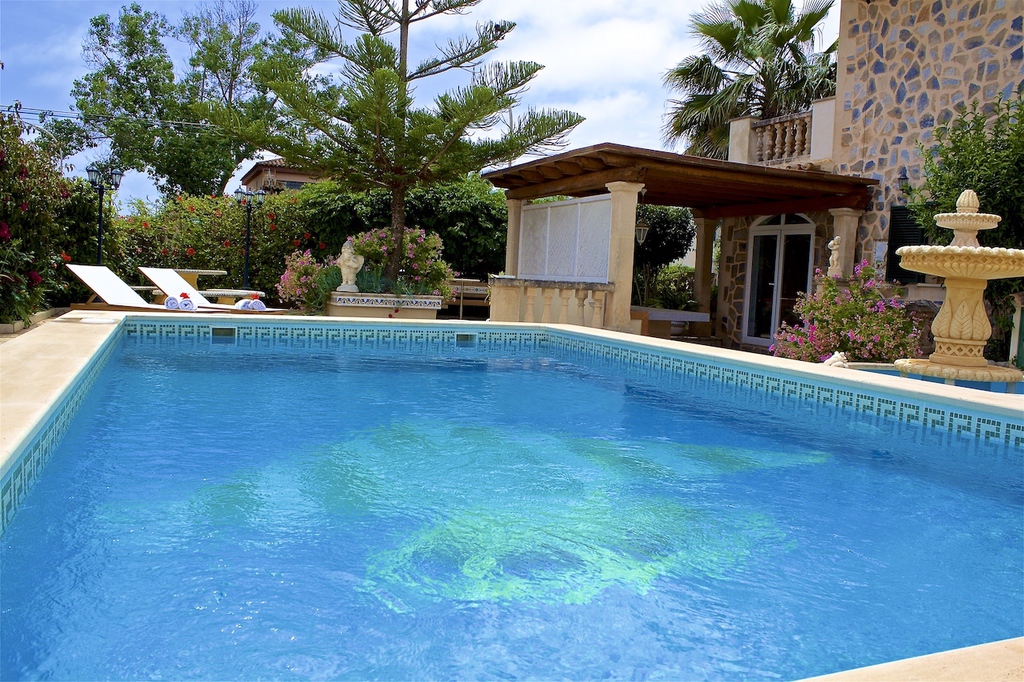 Im großen Poolbereich mit Ganztagssonne, aber auch romantischen Schattenplätzen, laden ausreichend Liegestühle und Sitzecken zum Verweilen und Träumen ein.