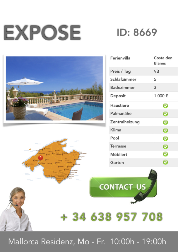 ein. Mallorca erleben, von seiner ruhigen und exklusiven Seite dennoch nur 1000 Meter vom Yachthafen und tollen Stränden entfernt, das alles ermöglicht diese Ferienvilla.