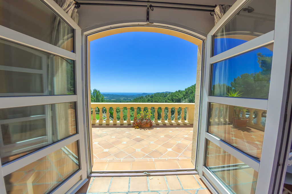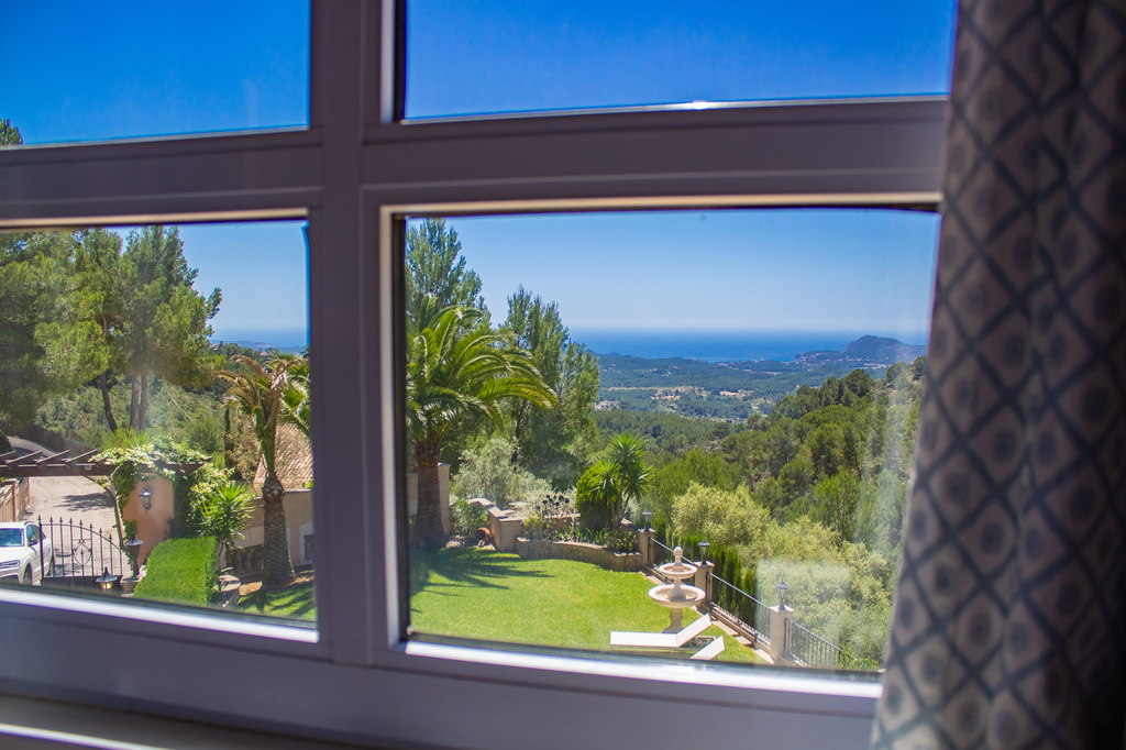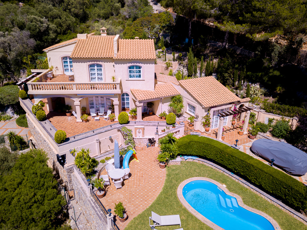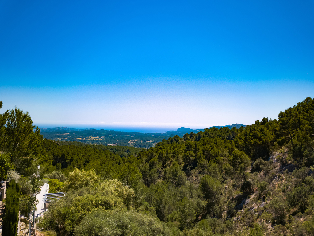 Diese traumhafte Ferienvilla in Calvia ist Ihre perfekte Urlaubsdestination. Der exklusive Blick über die Täler bis ans Meer ist unbezahlbar.