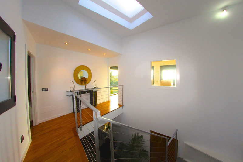 Auf 1050 qm Grundstück mit einer schönen Aussenanlage (Pool, Terrassen, Minigolf, BBQ etc.) wurde diese 240 Qm Villa gebaut. Wohnzimmer, 4 Schlafzimmer (eins ist aktuell als Büro genutzt) 3 Bäder, Wohnzimmer, Küche, Nebenräume, Terassen, Garage und Kellerräume bilden die grobe Aufteilung ab.