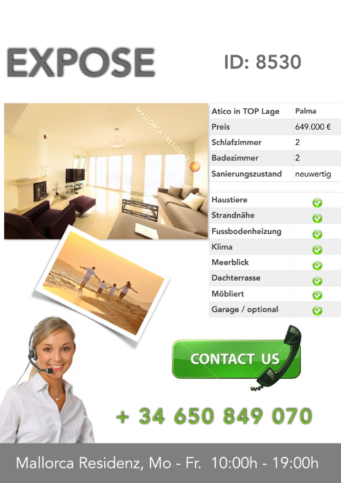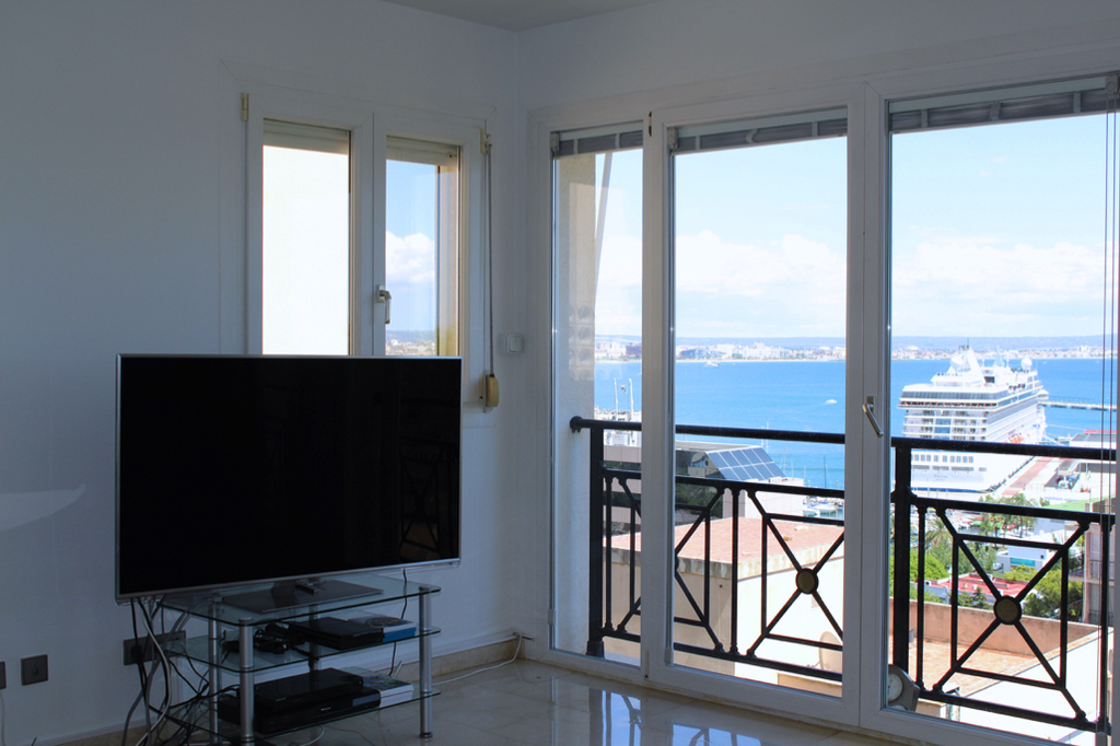 erwartet Sie eine ca. 70 qm grosse Dachterrasse mit fantastischem Meerblick auf die gesamte Bucht von Palma. Geniessen Sie den Sonnenuntergang oder nehmen Sie ein Sonnenbad in dieser herrlichen