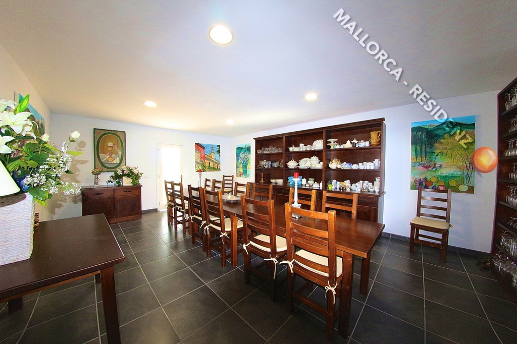 Binissalem, bajos, 1500 m2, 30000 m2 terreno, 10 habitaciones, 10 baños, jardín, AGRO TURISMO, pueblo muy bien comunicado con toda la isla por tren y por bus. Está siutado a los pies de la Sierra de Tramuntana (Patrimonio mundial de la Unesco), la casa se encuentra a penas un km. de la estación y su ubicación es en llano con vistas a las montañas, teniendo una gran panorámica de ellas, incluido el Puig Major. Este recinto tiene los papeles en orden, y es el lugar ideal para la oferta de escalada, senderismo, ciclismo.La casa en si consta de 9 habitaciones todas ellas con baño, un apartamento en suit, una gran cocina, comedor, y dos salones uno de los cuales con capacidad para más de 200 personas. Toda la casa está rodeada de terrazas cubierta. A parte, tiene una casita extra para invitados.El campo, está sembrado actualmente de más de 100 olivos con una producción el año anterior de 80 l .de aceite, y esto va en progreso, asimismo tiene naranjos, 150 paulonias que a principios de primavera se cubren de bellas flores; almendros, higueras, tuyas, enormes pinos..etc. Todas estas plantaciones además de embellecer la casa y el entorno sirven para cubrir la imagen de una fábrica cercana, construida en el pasado. Actualmente y estando dentro de la finca y situándonos enfrente de ella a pena si notamos su presencia, además hay que decir que la casa está orientada hacia la sierra.Asimismo en la casa hay un pozo de vena que suministra agua suficiente tanto para el campo, como para el funcionamiento de la casa, y de una enorme piscina de 15X15m..