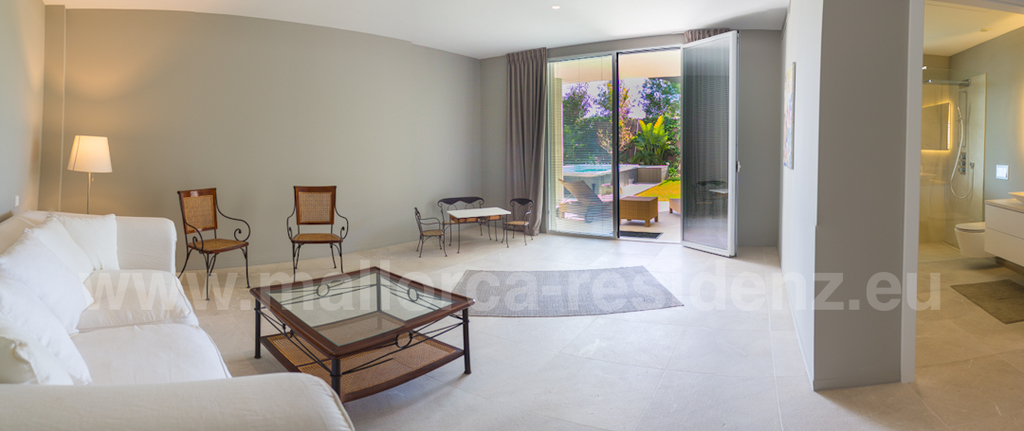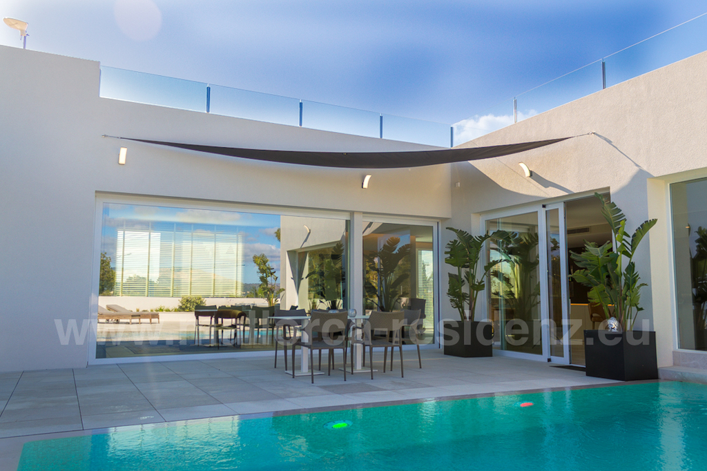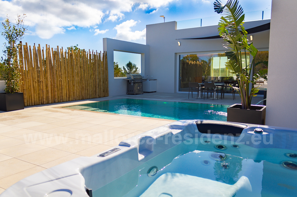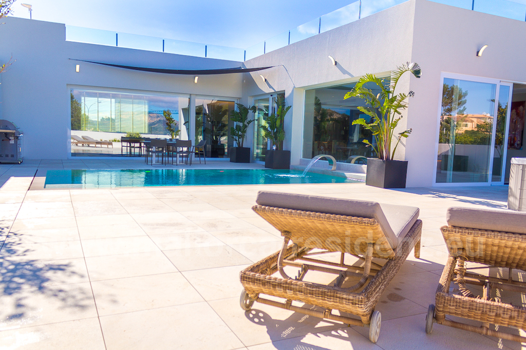 Moderne Neubauvilla mit Blick auf das Meer und die Berge in toller Lage / Nova Santa Ponsa. Wenige Minuten zum Strand, Golfplatz und dem Yachthafen Port Adriano.