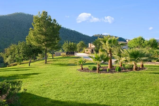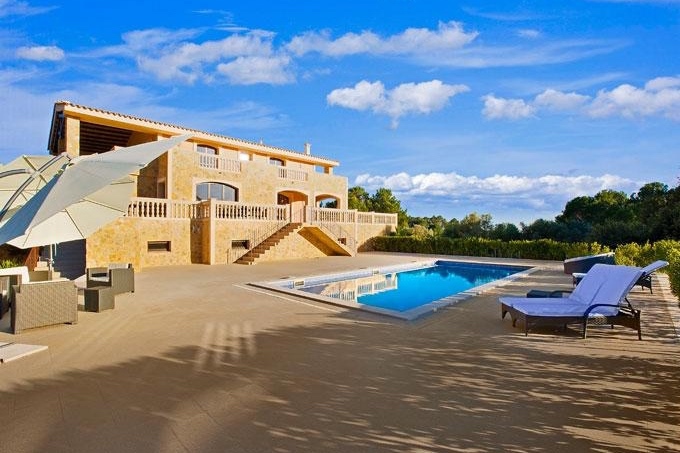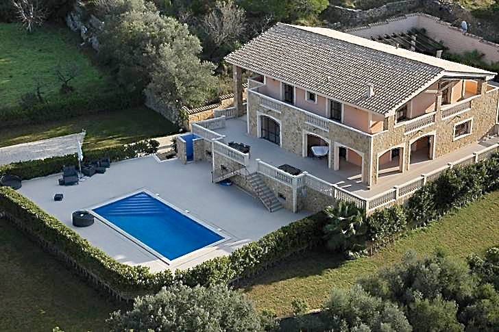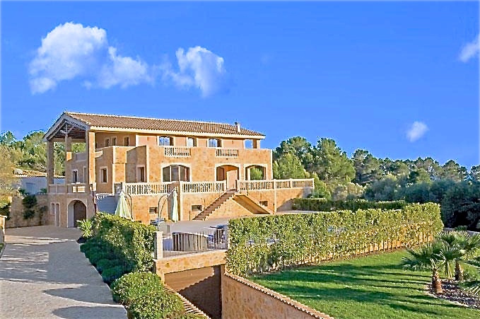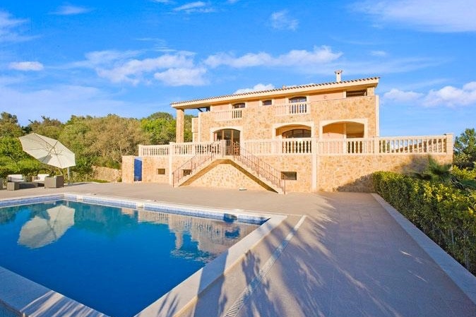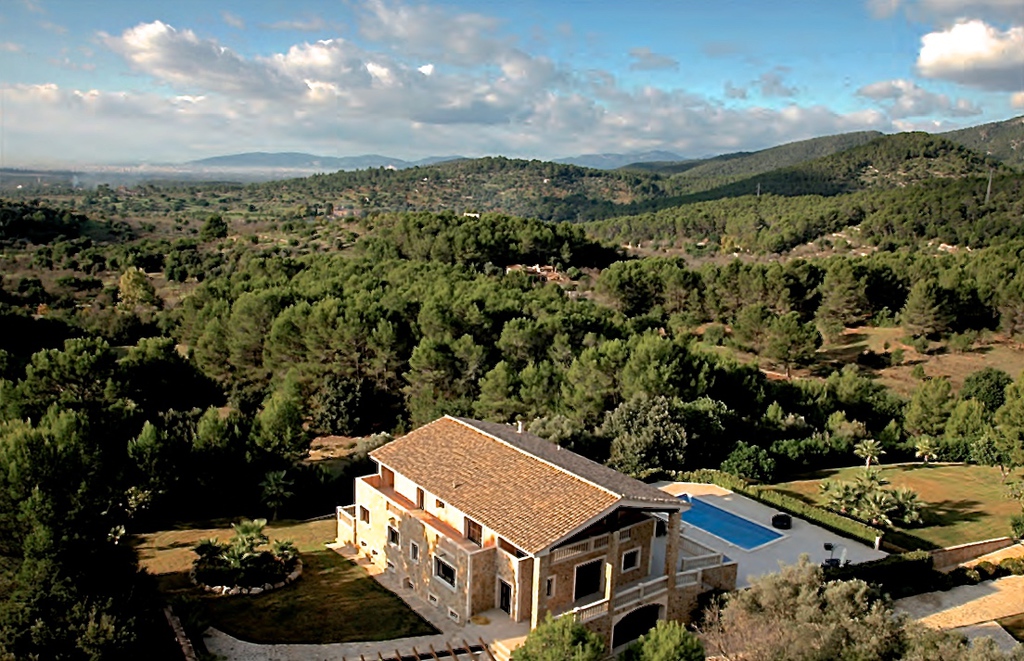 Diese traumhafte Luxus Naturstein-Finca in Santa Maria mit einem sehr schönen Panorama-Bergblick verfügt über ein Grundstück von