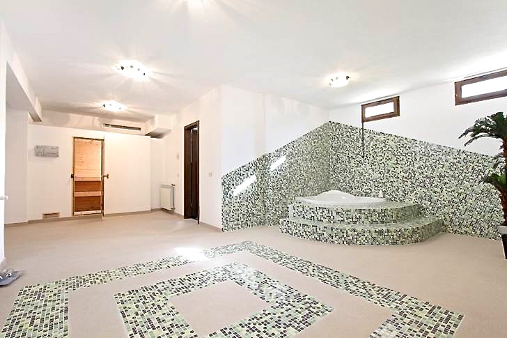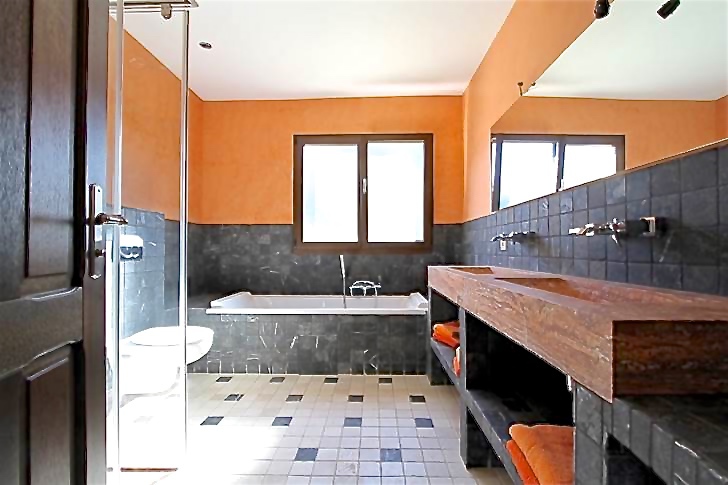 Bad. Auf der ersten Etage befinden sich vier Gästezimmer, die sich zwei luxuriöse Bäder teilen. Im Untergeschoss des Hauses gibt es einen tollen Wellnessbereich mit Fitnessraum, Sauna und Jacuzzi.