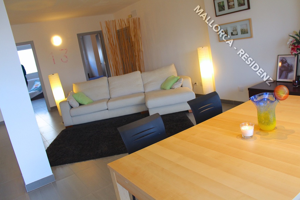 ein sehr schönes, helles Wohnzimmer mit einer schicken amerikanischen Küchenzeile. Weiterhin 2 Schlafzimmer plus dem Masterbedroom mit Bad en Suite, ein sehr grosszüges Gästebad und eine