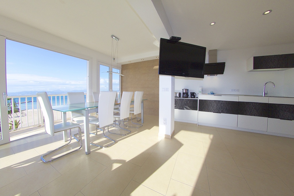 Von der Terrasse der Wohnung, haben Sie einen wunderschönen Blick auf das offene Meer und die gesamte Bucht bis nach Palma. Durch die sonnige Lage ist die Wohnung auch im Winter bestens geeignet und Sie können hier traumhafte Sonnenuntergänge geniessen.