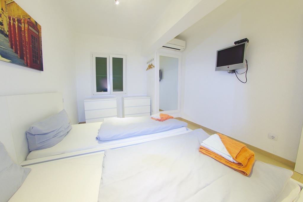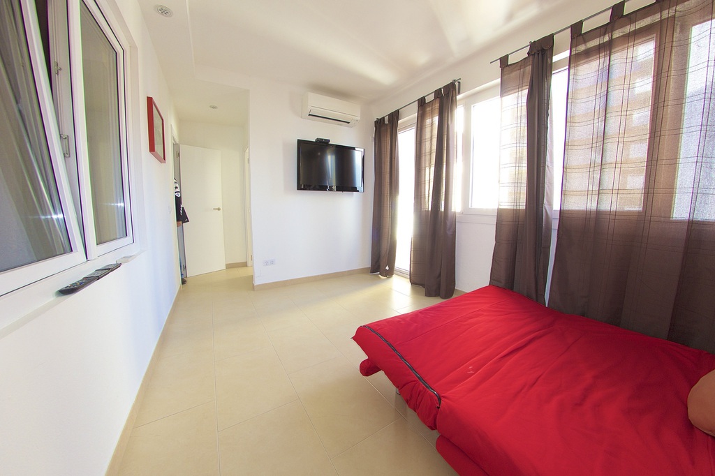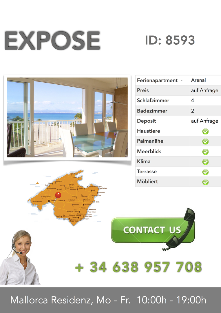 Diese komplett sanierte und modern eingerichtete große Ferienwohnung befindet sich unweit des alten Hafens von Arenal, direkt an der Promenade und dem langen Sandstrand.